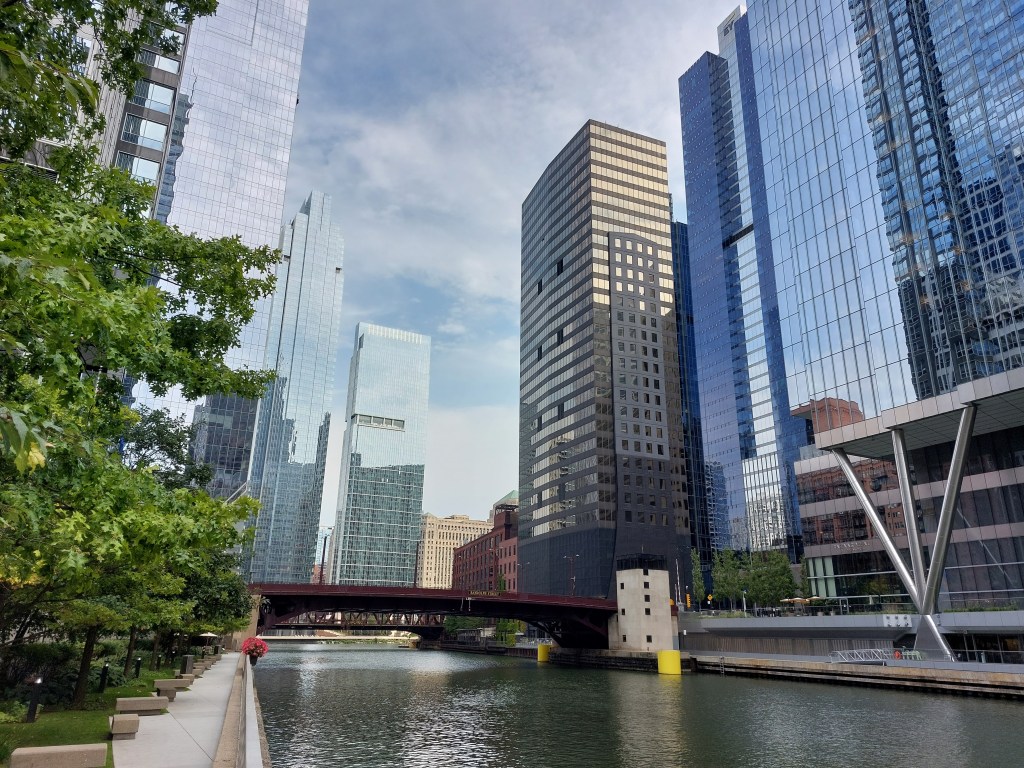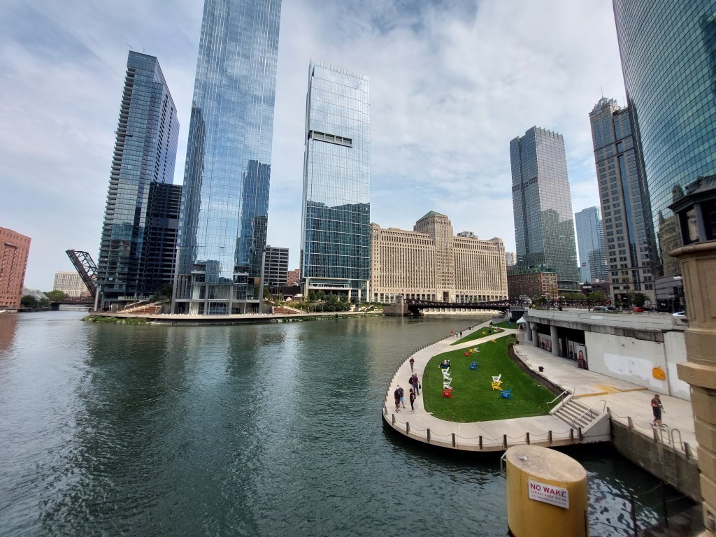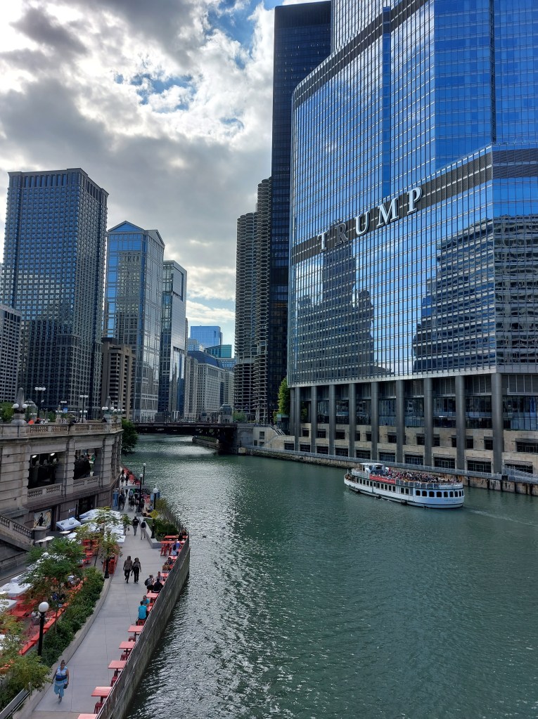 La Riverwalk de Chicago est une invitation à flâner le long de la rivière tout en admirant les impressionnants buildings. Cette promenade piétonne s’étend sur plusieurs kilomètres et te permet de découvrir la ville sous un nouvel angle. En chemin, nous avons même croisé la Trump Tower, un des gratte-ciel emblématiques de Chicago. C’est amusant, car nous sommes arrivés à Washington au tout début du procès de Trump. Tout au long de La Riverwalk, tu trouveras des restaurants, des bars et des boutiques, parfaits pour faire une pause en admirant le paysage. Je te conseille d’y aller pendant la journée pour profiter de la lumière.