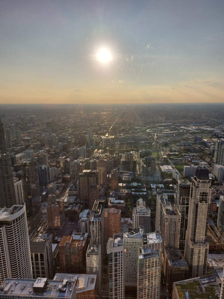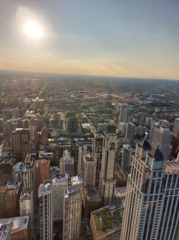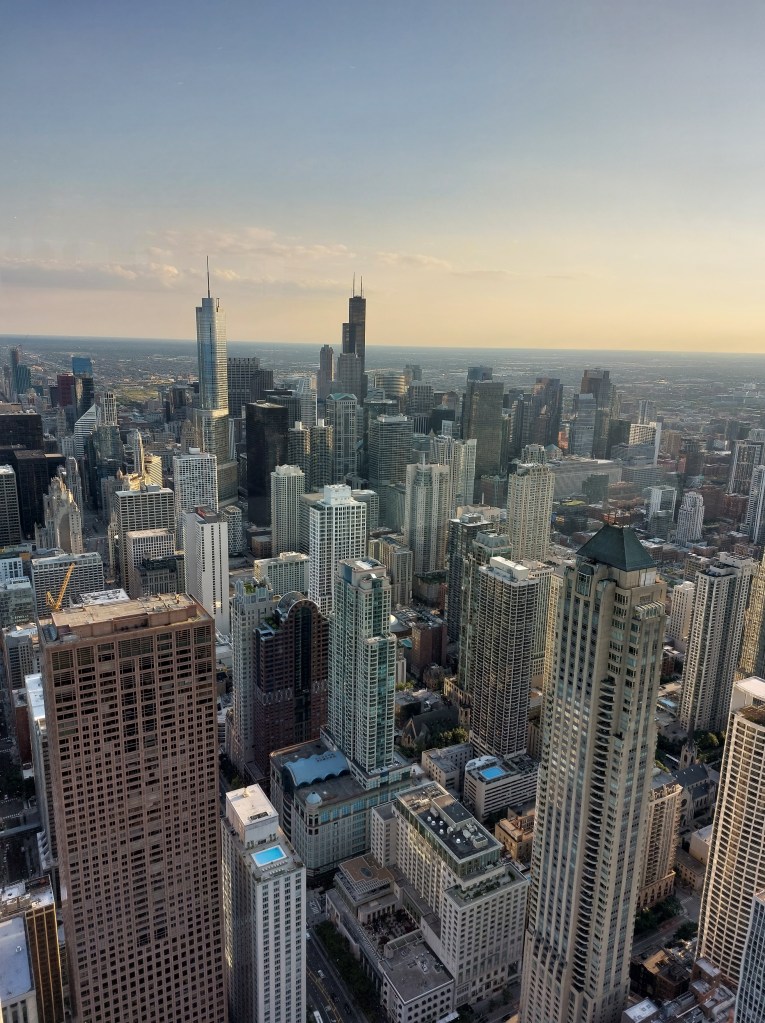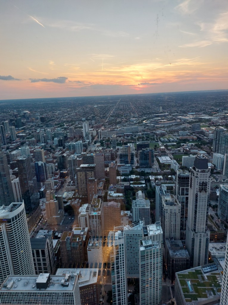 Pour une vue imprenable sur Chicago, rien de mieux que l’observatoire Chicago 360 situé au sommet de la John Hancock Center. À 304 mètres de hauteur, cet observatoire offre une vue panoramique exceptionnelle sur la ville, le lac Michigan et au-delà. Nous avons choisi d’y monter au coucher du soleil, un moment magique ! Si tu as le vertige comme moi, l’idée de s’approcher du bord peut être un peu intimidante, mais crois moi, cela en vaut la peine ! Même si nous avons décidé de ne pas faire l’attraction « Tilt » (une plateforme qui s’incline pour te donner l’impression de plonger dans le vide), l’expérience reste wahou ! Le meilleur conseil que je puisse te donner : prends le temps de profiter de la vue avec tes yeux, sans te concentrer uniquement sur les photos. Le spectacle est bien plus beau en vrai.