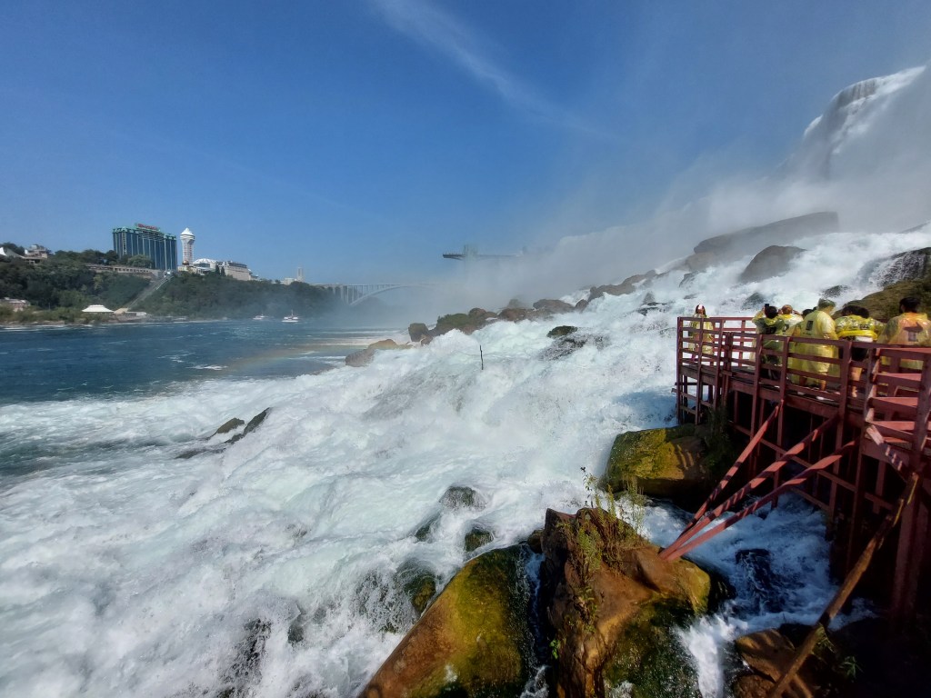Pour une immersion totale, la Cave of the Winds est une expérience à ne pas manquer. Contrairement au bateau, cette excursion te permet de marcher presque sous les chutes, sur une série de plateformes en bois. L’eau est si abondante que beaucoup de visiteurs choisissent de se déchausser pour éviter de tremper leurs chaussures. Le poncho que tu recevras à l’entrée sera sans aucun doute le meilleur investissement de ta journée !