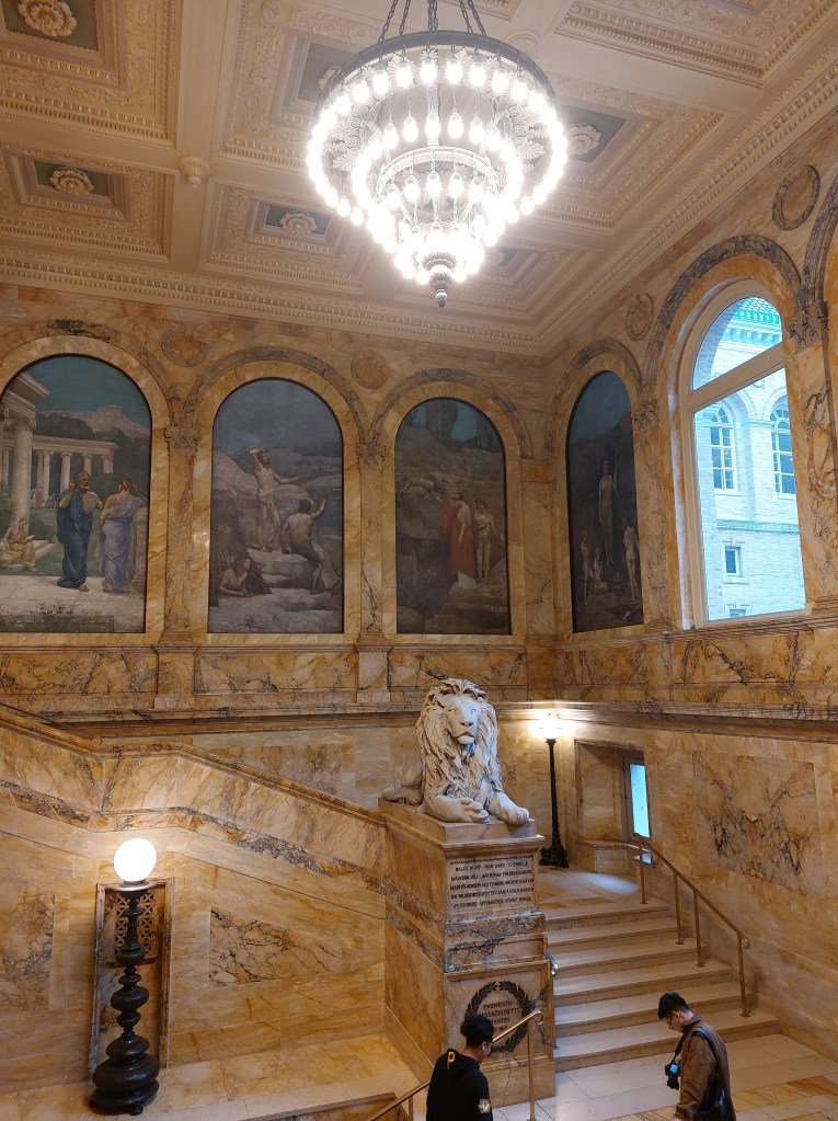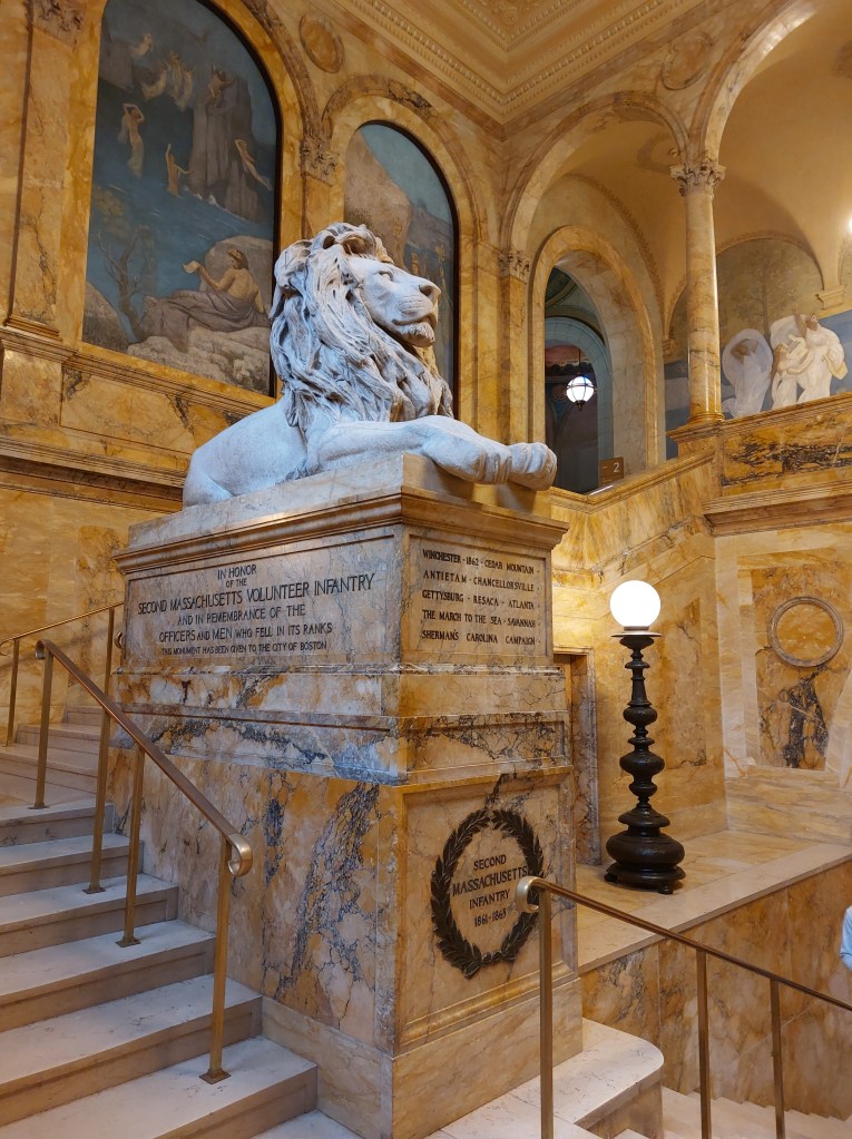 Impressionnante dès l’entrée, la Boston Public Library (BPL pour les intimes) est bien plus qu’une simple bibliothèque. Fondée en 1848, c’est l’une des premières bibliothèques municipales gratuites des États-Unis. Son bâtiment actuel, situé sur Copley Square, est un joyau de l’architecture Beaux-Arts, conçu par l’architecte Charles Follen McKim en 1895. Ses vastes salles de lecture ornées de fresques et ses colonnes de marbre en font un lieu à part. La BPL se distingue par sa richesse architecturale et culturelle : une cour intérieure paisible, un lieu de rendez-vous prisé pour des événements culturels et une collection de plus de 23 millions de documents.